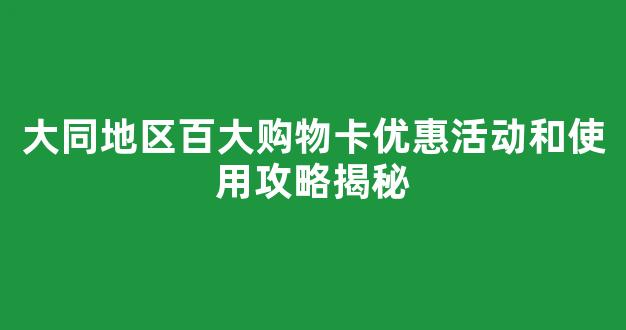 大同地区百大购物卡优惠活动和使用攻略揭秘