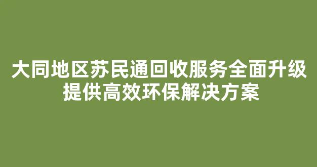 首先,苏民通回收服务在大同地区已经有很多年的历史了。他们一直以安全、快捷、有诚信著称。这次全面升级后,他们的服务更加完善,尤其是在环保方面做得非常出色。如果你和我一样,关心环境保护,那么苏民通绝对是一个不错的选择。