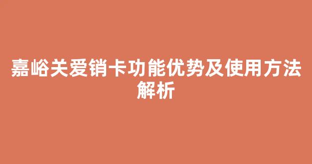 嘉峪关爱销卡功能优势及使用方法解析