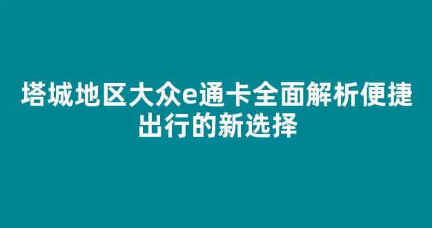 塔城地区大众e通卡全面解析便捷出行的新选择