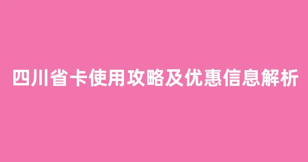 以上是关于四川省卡的使用攻略和优惠信息的详细解析。希望这些信息能帮助你更好地使用四川省卡,享受四川的便利与福利。