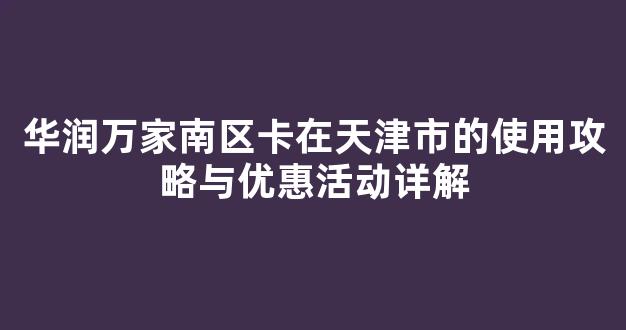 如果你在天津生活或工作,华润万家南区卡绝对是你购物时的好帮手。这张卡不仅可以在华润万家超市使用,还能享受各种优惠活动。今天,我就来为你详细讲解如何在天津市使用华润万家南区卡,以及如何最大化利用它的优惠。