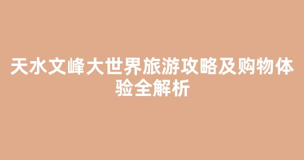 天水文峰大世界是一个非常适合旅游的地方。无论你是喜欢自然风光、文化体验还是购物娱乐,这里都能满足你的需求。希望这篇攻略能帮助你更好地规划你的旅行,享受一个愉快的假期。