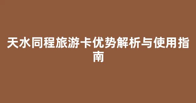 以上是关于天水同程旅游卡的详细解析和使用指南。希望这些信息能帮助你更好地规划你的旅行。