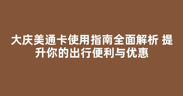 大庆美通卡不仅方便,还有很多优惠活动。比如,每月使用美通卡乘坐公交车达到一定次数后,可以享受折扣优惠。此外,节假日期间还会有额外的优惠活动,让你在出行时省下更多钱。