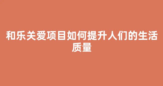 和乐关爱项目如何提升人们的生活质量