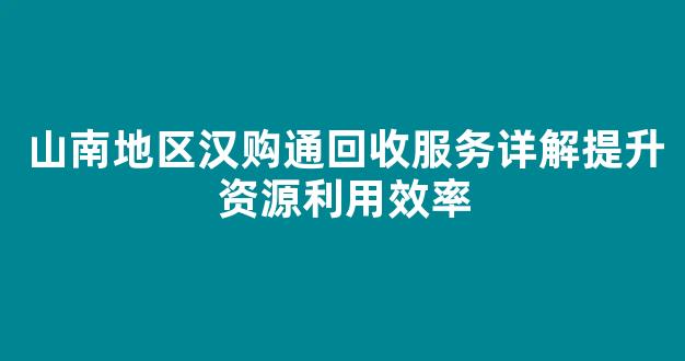 山南地区汉购通回收服务详解提升资源利用效率