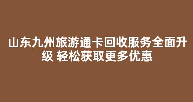 山东九州旅游通卡回收服务全面升级 轻松获取更多优惠