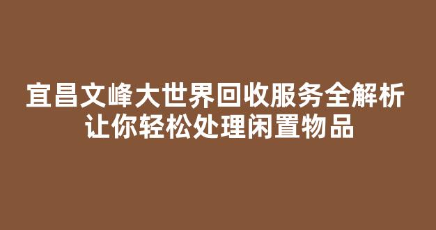 在宜昌文峰大世界回收服务中,支持的物品种类十分广泛。常见的回收物品包括: