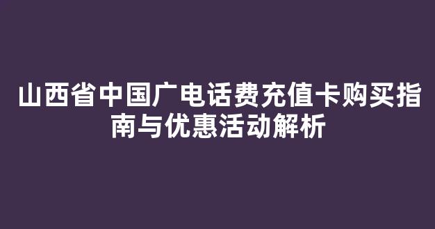 山西省中国广电话费充值卡购买指南与优惠活动解析