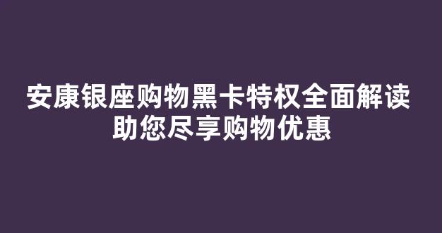 安康银座购物黑卡特权全面解读 助您尽享购物优惠
