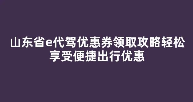 山东省e代驾优惠券领取攻略轻松享受便捷出行优惠