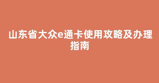 山东省的大众e通卡是一种便捷的公共交通卡,广泛应用于济南、青岛等城市的公交、地铁、出租车等交通工具。这张卡为市民提供了快速、安全的支付方式,也方便了出行。本文将详细介绍山东省大众e通卡的使用方法、办理流程以及一些注意事项,帮助大家更加了解这张卡如何使用和办理。
