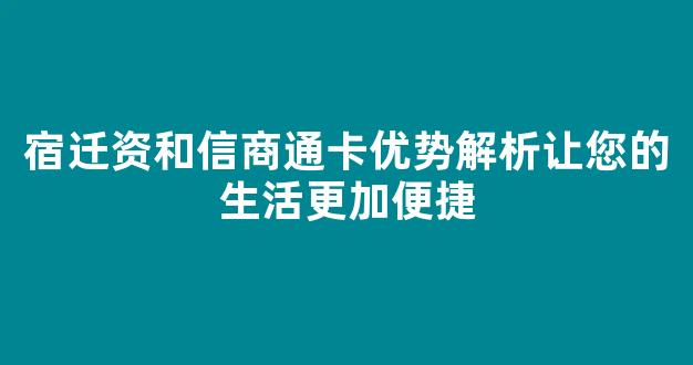 宿迁资和信商通卡优势解析让您的生活更加便捷