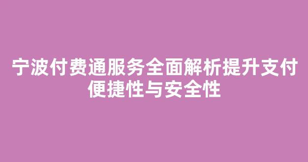 宁波付费通服务全面解析:提升支付便捷性与安全性