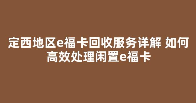 定西地区e福卡回收服务详解 如何高效处理闲置e福卡