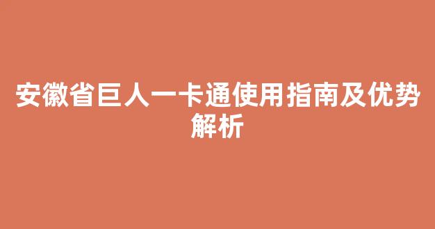 安徽省巨人一卡通使用指南及优势解析