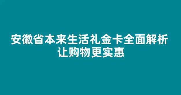 安徽省本来生活礼金卡全面解析 让购物更实惠