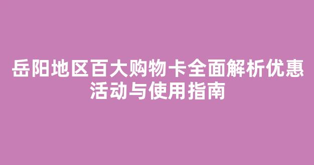 岳阳地区百大购物卡全面解析优惠活动与使用指南
