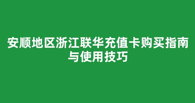 安顺地区浙江联华充值卡购买指南与使用技巧