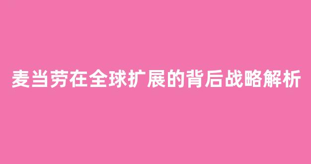 麦当劳在全球扩展的背后战略解析