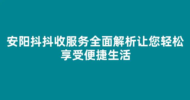 安阳抖抖收服务全面解析,让您轻松享受便捷生活