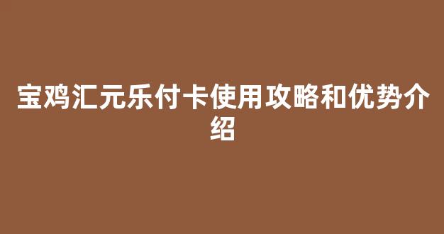 宝鸡汇元乐付卡使用攻略和优势介绍