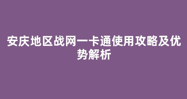 安庆地区战网一卡通使用攻略及优势解析