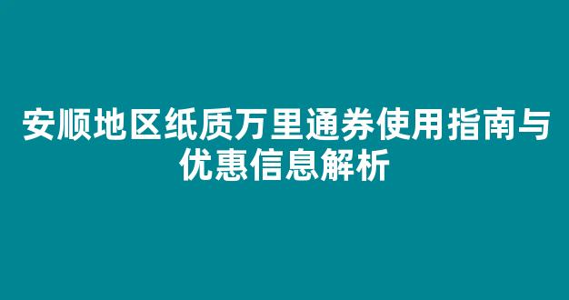 安顺地区纸质万里通券使用指南与优惠信息解析