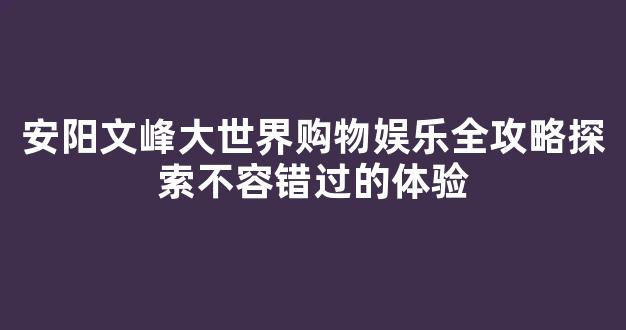 安阳文峰大世界购物娱乐全攻略:探索不容错过的体验