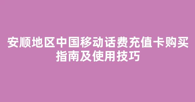 安顺地区中国移动话费充值卡购买指南及使用技巧