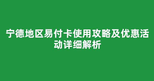 宁德地区易付卡使用攻略及优惠活动详细解析