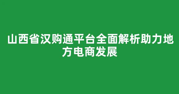 山西省汉购通平台全面解析助力地方电商发展