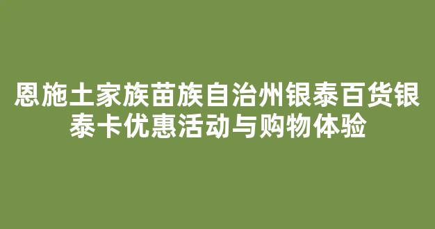 恩施土家族苗族自治州的银泰百货,作为当地著名的购物中心,常常举办各种优惠活动,吸引了众多消费者前来购物。银泰卡作为银泰百货的会员卡,给顾客带来了不小的优惠和便利。本篇文章将详细介绍银泰卡的优惠活动和购物体验,帮助大家更好地了解如何享受这些优惠以及购物的乐趣。