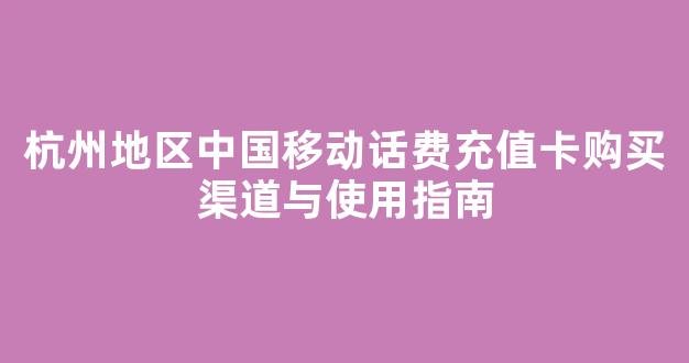 以上是杭州地区中国移动话费充值卡的购买渠道与使用指南。通过上述介绍,希望您能更轻松地了解和使用这些充值卡,享受便捷的通讯生活。