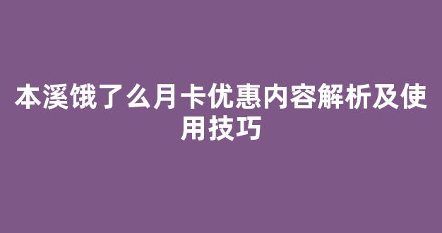 在现代的生活中,外卖成为了很多人日常生活的重要组成部分,而饿了么月卡为用户提供了一个便捷的外卖优惠方式。饿了么月卡是一项非常受欢迎的优惠活动,它不仅能帮助用户节省不少外卖费用,还能让大家在订餐时享受到更多的特权和便利。本文将详细介绍本溪地区饿了么月卡的优惠内容及使用技巧,帮助你更好地利用这项优惠活动。