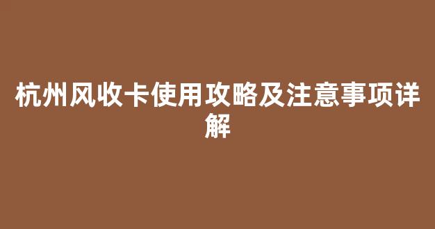 杭州风收卡使用攻略及注意事项详解
