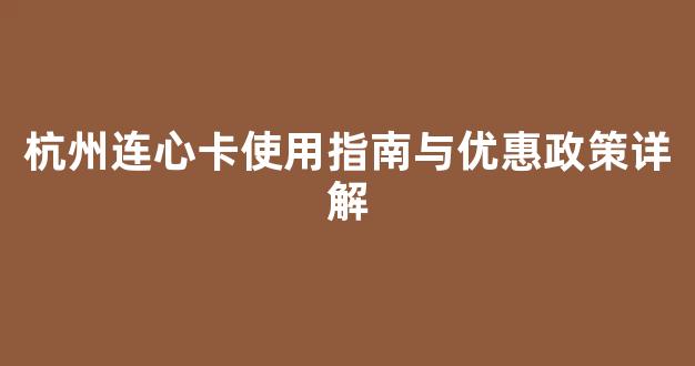 杭州连心卡使用指南与优惠政策详解