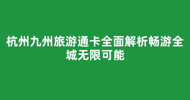 杭州作为中国著名的旅游城市,吸引了大量游客前来游玩。为了让游客的旅行更加便利和高效,杭州推出了九州旅游通卡。这张卡为游客提供了更为便捷的交通和景点游玩体验,让游客能尽情享受杭州的美丽。本文将对杭州九州旅游通卡进行全面解析,帮助大家更好地理解和利用这张卡,畅游杭州的每个角落。