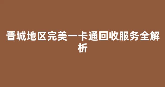 晋城地区完美一卡通回收服务全解析
