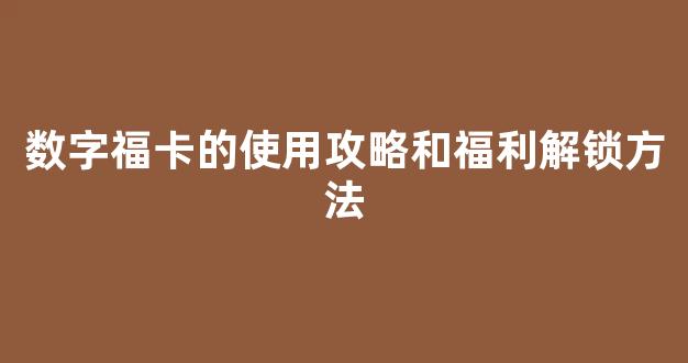 数字福卡是一种新兴的电子福利券,广泛应用于各种购物平台和线下商家,通过解锁福卡,用户可以享受不同程度的折扣、优惠和奖励。随着越来越多的电商平台和品牌商家加入到数字福卡的使用行列,如何高效使用福卡、获取更多福利成为了用户关注的重点。本文将详细介绍数字福卡的使用攻略,如何解锁福卡并获得最大优惠,帮助你充分利用这一福利工具。