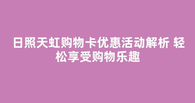 天虹购物卡是近年来广受消费者欢迎的一种购物方式,特别是在日照的天虹商场。随着越来越多的商场推出各种优惠活动,天虹购物卡也不例外。通过天虹购物卡,消费者可以享受更为便捷和优惠的购物体验。本篇文章将详细解析日照天虹购物卡的优惠活动,帮助大家更好地了解如何利用这些优惠,轻松享受购物的乐趣。