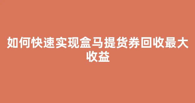 随着电子商务的不断发展,线上购物和优惠券的使用已经成为现代消费者购物的一部分。盒马提货券作为一种非常受欢迎的购物券,广泛应用于盒马鲜生平台的购物中。很多消费者可能会遇到不想使用或过期的提货券,那么如何快速实现盒马提货券回收最大收益,成为了消费者关心的一个重要问题。本文将详细分析盒马提货券回收的最佳方法,帮助大家高效利用资源,提升回收收益。