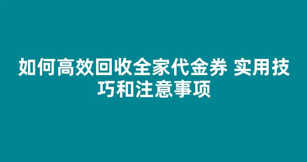 全家代金券作为一种常见的购物优惠券,深受消费者喜爱。不仅可以在全家便利店内购买商品,还能够享受一定的折扣和优惠。然而,许多消费者可能会在代金券即将过期时,因各种原因未能及时使用。此时,回收全家代金券成为一个不错的选择,可以帮助您把未使用的代金券变现。那么,如何高效回收全家代金券?本文将为您提供一些实用技巧和注意事项,帮助您顺利回收代金券,最大化利用您的代金券价值。