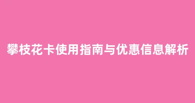攀枝花卡是近年来推出的一种便捷支付工具,它为用户提供了多个优惠与便捷的支付方式。通过这张卡,用户能够享受到不同行业和场所的折扣和优惠。本文将为您详细介绍攀枝花卡的使用方法、如何获取优惠以及回收渠道等信息,帮助您更好地使用这张卡,享受它带来的便利。