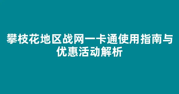 攀枝花地区战网一卡通使用指南与优惠活动解析