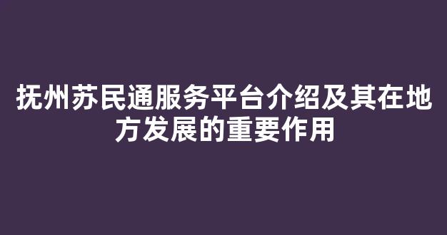 抚州苏民通服务平台介绍及其在地方发展的重要作用