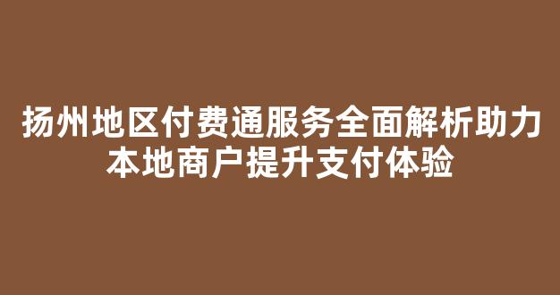 扬州地区付费通服务全面解析助力本地商户提升支付体验