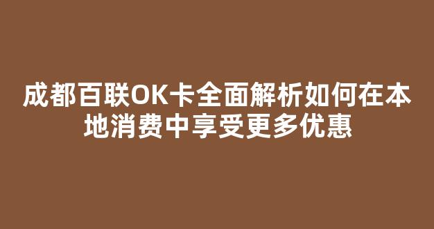 成都百联OK卡全面解析如何在本地消费中享受更多优惠