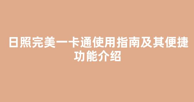 日照完美一卡通是一种方便快捷的支付工具,适用于日照市的多个公共交通、商业消费和服务项目。通过这张卡,市民可以享受便捷的出行、购物等服务,不仅提高了生活效率,也节省了大量的时间和精力。本文将详细介绍日照完美一卡通的使用方法以及其各项便捷功能,帮助市民更好地了解如何充分利用这一工具。